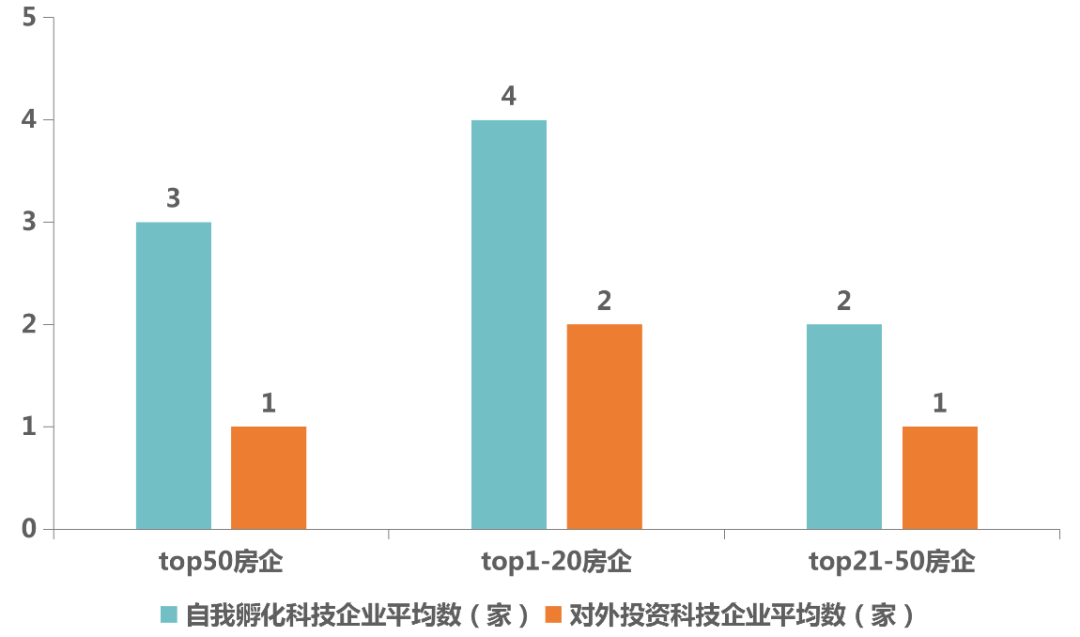 圖:TOP50房企自我孵化科技企業平均數VS對外投資科技企業平均數