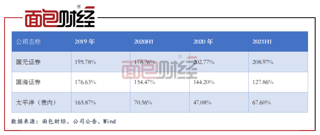除東方證券未披露相關信息外,2021年上半年國元證券和國海證券的股票質押式回購業務的客戶平均履約保障比例均較上年末有所下滑,但仍較充足。值得關注的是,太平洋的該指標雖有所上升但仍較低,僅為67.6%尚不足100%。(HXY)