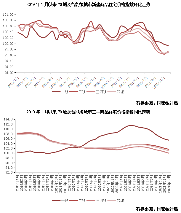 此外值得注意的是,12月70個大中城市新建商品住宅和二手住宅價格同比分別上漲2%和1%,其中二線城市分別上漲2.8%和1.5%。多個城市出臺二手房交易指導(dǎo)價后,2021年二手住宅市場遭遇較大價格降幅,同比降幅顯著。