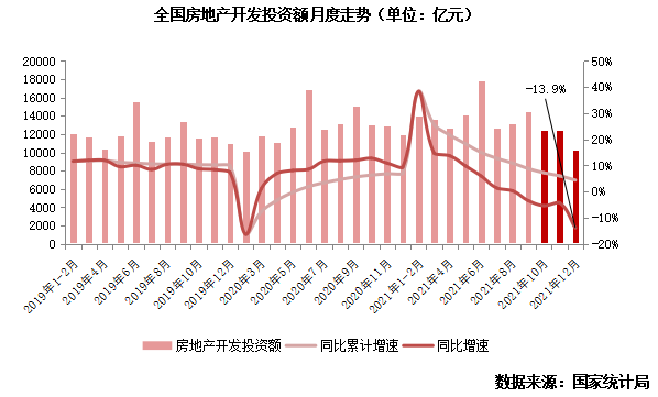 據(jù)國家統(tǒng)計局?jǐn)?shù)據(jù):2021年,全國房地產(chǎn)開發(fā)投資14.8萬億元,比上年增長4.4%。12月單月完成開發(fā)投資額僅10288億元,同比下降13.9%,為4年同期新低。
