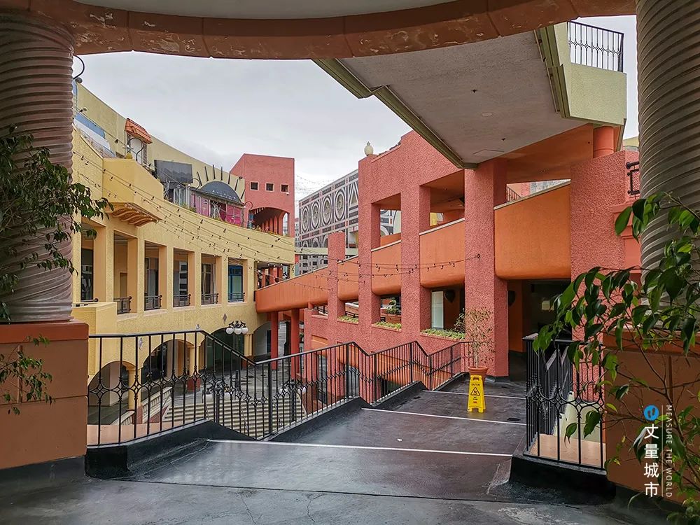 之所以被奉為商業傳奇,首先是建筑自身極富特色——建筑整體色彩絢麗;商業綜合體中間開出的峽谷一樣的步行街,空間變化多樣,富有探索性。霍頓廣場也是設計師Jerde的得意之作,是商業「體驗式建筑」的開創。