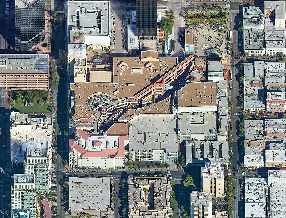 霍頓廣場占據了城市中心6.5個街區,建筑面積7萬多平米,由著名的捷得(Jerde)規劃設計公司在1985年設計而成。
