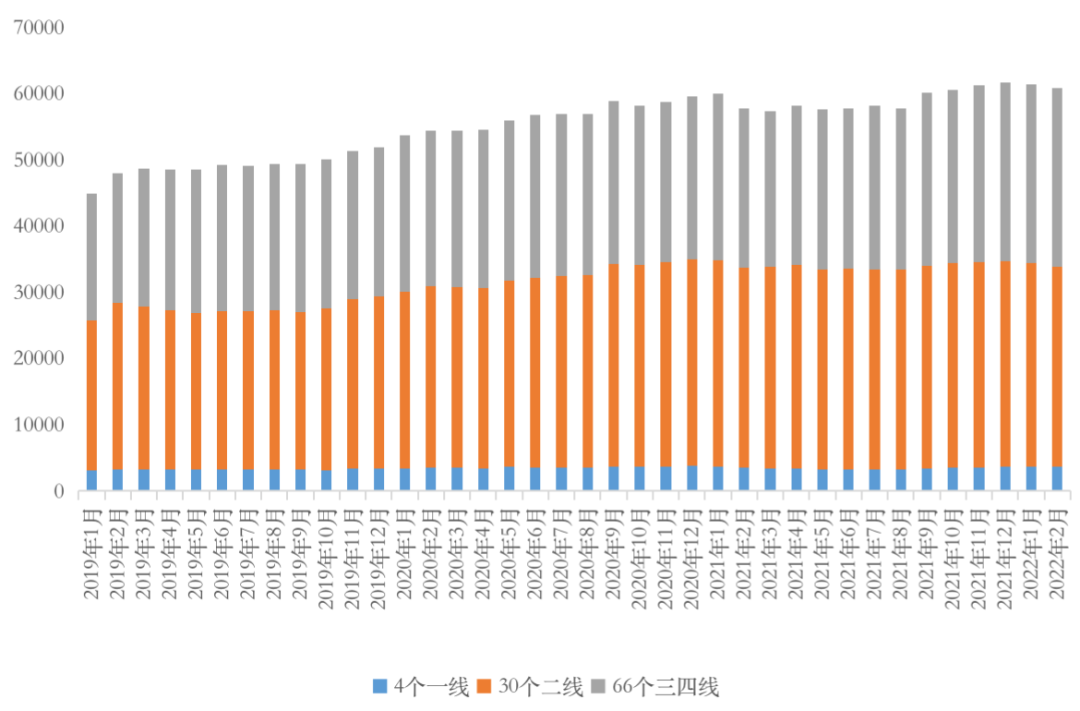 注:2022年2月商品住宅庫存去化周期=2022年2月末商品住宅庫存量/近3月商品住宅成交面積均值