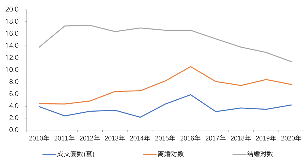 婚育是推動住房需求入市的重要動力,但是受婚育觀念、社會年齡結構結構變化等因素影響,近年來新婚人數快速下滑,與之相關的住房需求也正在面臨著巨大變化。