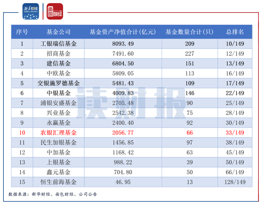 背靠農行、東方匯理 總規模處于銀行系基金公司中下游