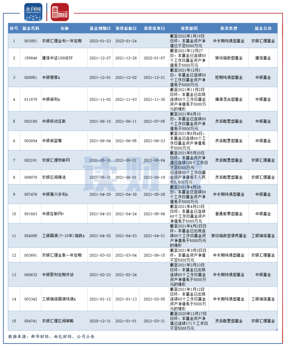 五大行系基金公司牛年規模清盤13只,中銀基金居首