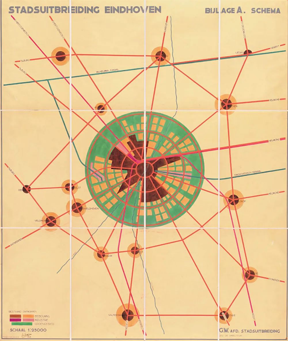 ▼ 1920年代,埃因霍溫已形成放射狀城市結(jié)構(gòu)(來源:Wikipedia)