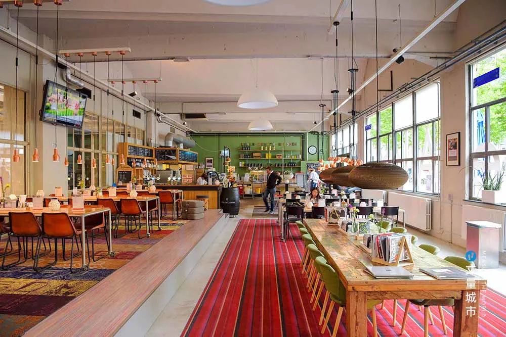 再比如Strijp-S園區(qū)成為低碳出行的實踐區(qū),建設(shè)屋頂生態(tài)花園,引入智能照明系統(tǒng),構(gòu)建步行友好路網(wǎng)、自行車網(wǎng)……