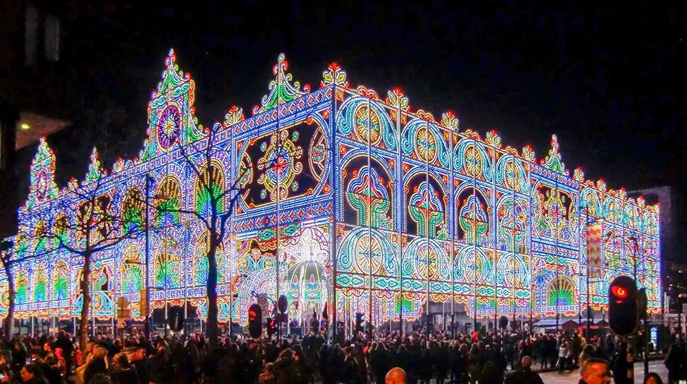 ▼ 以城市為背景的燈光節(jié),既是展示窗口,又是展銷中心(來源:上圖:Wikipedia,下圖:unsplash)