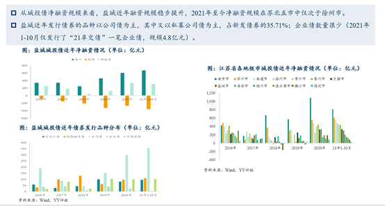 大家一直覺得鹽城發債比較困難,但其實最困難的18年(那時候疑似一些非市場化發行),但就算這樣,他的凈融資也是為正的,20年的融資增速斜率又上來了,融資額還是挺多的,整體來講它的一個融資規模其實都在攀升。