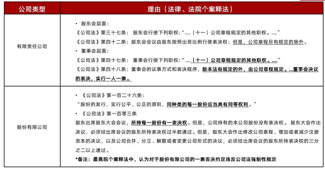一票否決權的效力現狀,或曰其與中國目前法律體系的沖突我們整理如下圖: