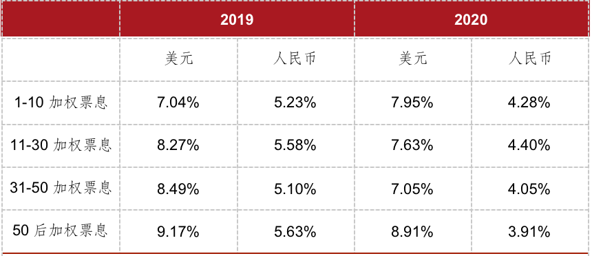 表2:2019年及2020前8月加權(quán)票息