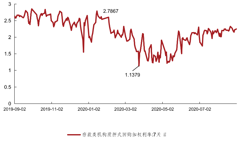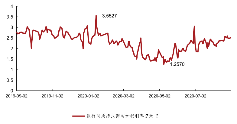 今年4月份以來,M2的規(guī)模逐步提升,至8月份已至213.7萬億的水平,基本達到央行的合意目標(biāo),因此貨幣政策轉(zhuǎn)向全面寬松的可能性不大。代表了金融機構(gòu)資金拆入成本的R007(參與證券交易的機構(gòu)投資者以利率債為質(zhì)押的7天期回購利率)與商業(yè)銀行資金拆入成本的DR007(存款類機構(gòu)間利率債質(zhì)押的7天期回購利率)的逐步回升也從側(cè)面說明了這一點,央行秉承松緊適度的貨幣政策,如果貨幣流動性過于寬松就回適當(dāng)調(diào)緊,目前商業(yè)銀行及其他金融機構(gòu)的資金成本已不像數(shù)月前那么低,對于發(fā)債企業(yè)的收益率要求也會適當(dāng)上調(diào),經(jīng)濟穩(wěn)步復(fù)蘇的基調(diào)不會變,對于銀行的信貸投放力度的調(diào)控也會繼續(xù)。