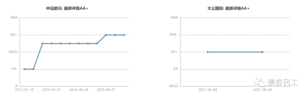 但是需要關注的是,泰州海陵集團已經在2019年6月27日獲得中證鵬元AA+評級;已于2021年2月4日取得大公國際AA+評級。也就是說,泰州海陵集團此次評級調升之后,一共獲得了3家評級機構的AA+主體信用等級。