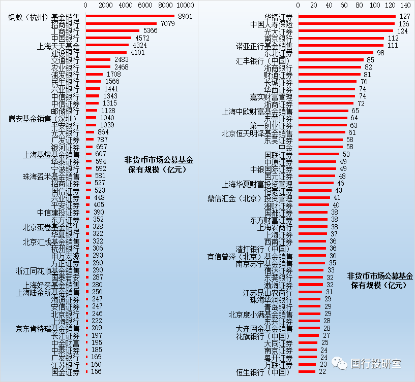 需要說明的是,前100大榜單是按照股票+混合公募基金的保有規(guī)模來排序,并非是按照非貨幣公募基金的保有規(guī)模排序,這表明中基協(xié)對銷售機構(gòu)的權(quán)益類基金保有規(guī)模更為重視。