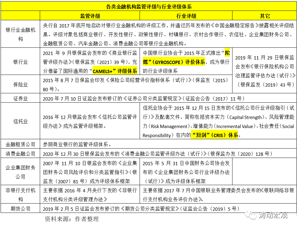原標(biāo)題: 各類(lèi)金融機(jī)構(gòu)監(jiān)管評(píng)級(jí)體系大全(2021年版)