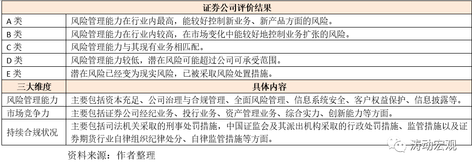 2、證監(jiān)會(huì)主要根據(jù)2020年7月10日發(fā)布的《證券公司分類(lèi)監(jiān)管規(guī)定》(證監(jiān)會(huì)公告〔2020〕42號(hào))進(jìn)行評(píng)價(jià)。這一文件最早于2009年5月26日發(fā)布,并分別于2010年5月14日、2017年7月6日以及2020年7月10日三次修訂。證券公司的分類(lèi)評(píng)價(jià)標(biāo)準(zhǔn)以風(fēng)險(xiǎn)管理能力為基礎(chǔ),主要依據(jù)《證券公司風(fēng)險(xiǎn)管理能力評(píng)價(jià)指標(biāo)與標(biāo)準(zhǔn)》??梢哉f(shuō)證券公司的分類(lèi)評(píng)價(jià)體系是證監(jiān)會(huì)體系下各機(jī)構(gòu)評(píng)價(jià)的主要基準(zhǔn),諸如期貨公司等其它金融機(jī)構(gòu)的評(píng)價(jià)體系亦主要參考證券公司。