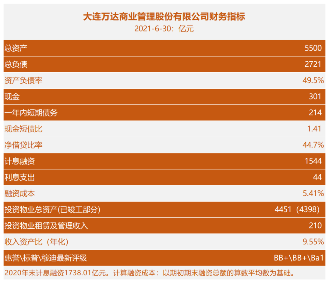 根據地產三哥推算,萬達商管2021年上半年的綜合融資成本為5.4%左右。