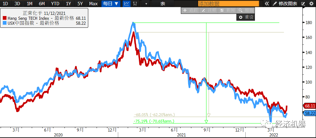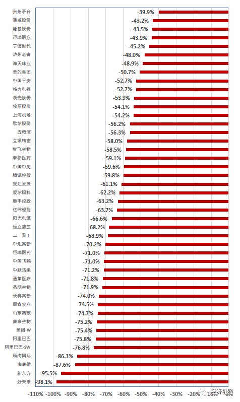 但今年的大會,國內的追隨者們似乎低調了不少。這也難怪,過去一年多來,“時間的朋友”們所奉為圭臬的“核心資產”和各種茅們出現了幅度驚人的調整。A股的核心資產指數下跌了40%(圖1)。