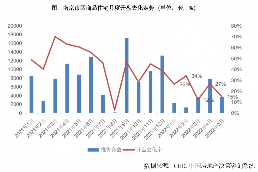 南京、武漢、蘇州等城市均在5月密集出臺(tái)寬松性政策紓困樓市,但是政策落地僅帶動(dòng)短期來訪量回升,對成交的刺激作用尚未顯現(xiàn),開盤去化率延續(xù)低位波動(dòng)。