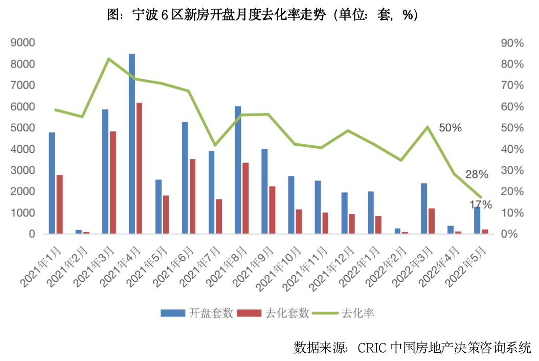 事實(shí)上,近2個(gè)月以來寧波市場熱度穩(wěn)步回落,開盤去化率已由3月50%降至5月僅17%,目前客戶來訪量僅有3月高點(diǎn)的1/3,認(rèn)購量更是降至3月高點(diǎn)的一半。市場觀望情緒持續(xù)加劇,一方面實(shí)體經(jīng)濟(jì)低迷,收入大打折扣的情況下投資更加聚焦到杭州等核心城市;另一方面,政策密集出臺(tái)期,房企觀望情緒加劇,核心區(qū)域捂盤惜售,外圍加緊蓄客,因而整體推盤積極性并不高漲。