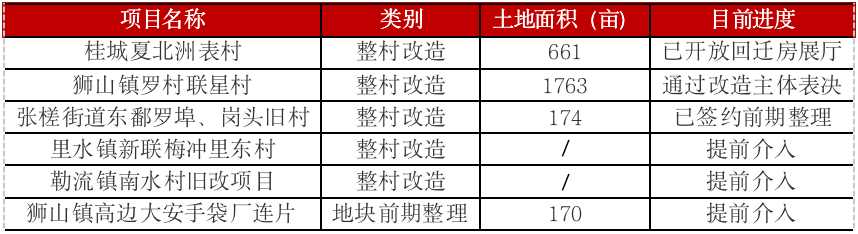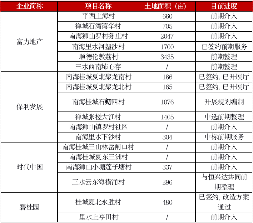 表:碧桂園、保利、富力、時代目前參與的佛山舊村改造項目情況