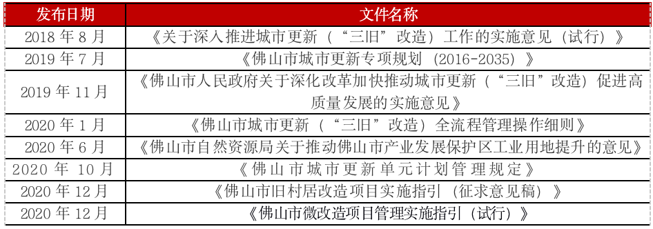 表:佛山市級部分城市更新政策文件