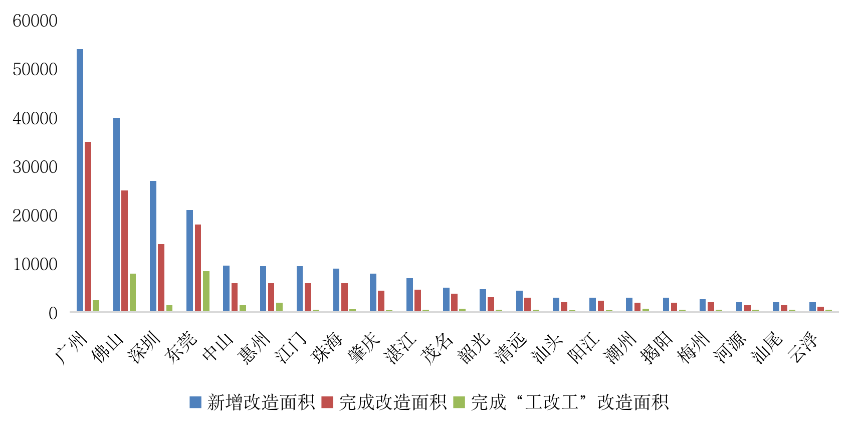 圖:廣東省各市“三舊”改造三年行動方案(2019-2021年)規劃情況
