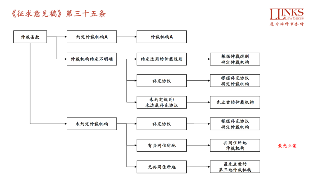 2. 沒約定的, 共同住所地的仲裁機構受理, 此處《征求意見稿》雖然沒有言明, 但對于北京、上海這類有多個仲裁機構的城市, 其實依然暗含著最先立案的仲裁機構受理的情況;