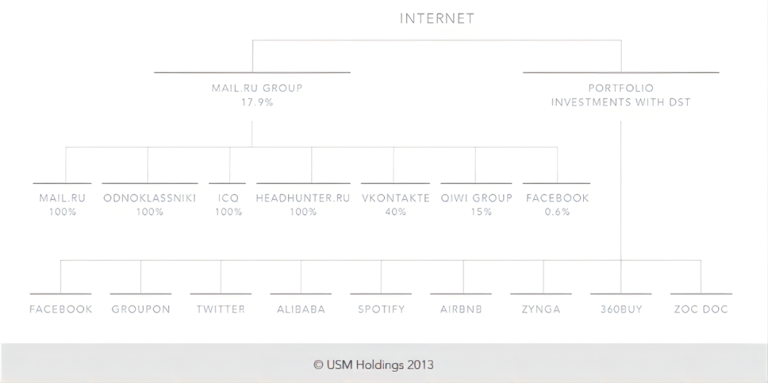 “通過DST和Mail.Ru集團的投資,USM Holdings憑借在 Facebook、Twitter、Groupon、Zynga、Spotify、Zocdoc、Airbnb、阿里巴巴和京東商城等世界領先和最有價值的互聯網資產中的股份而在國際上聲名鵲起。”
