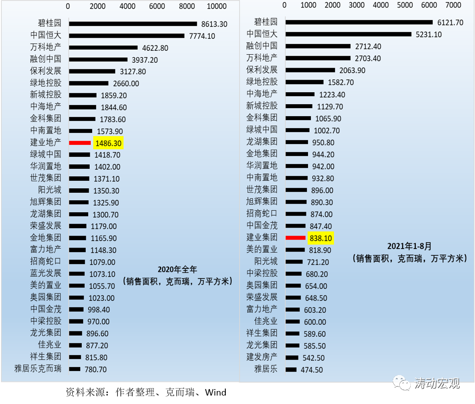 但由于不同地區(qū)的地價(jià)與房?jī)r(jià)差異明顯,因此這種排名似乎并不公允。若以銷售面積來(lái)看,則發(fā)現(xiàn)建業(yè)集團(tuán)則分別位居中國(guó)地產(chǎn)企業(yè)第11位(2020年)和第19位(2021年1-8月)。因此,建業(yè)集團(tuán)的市場(chǎng)地位雖然不足以和恒大相提并論,但終歸也算是位于市場(chǎng)前列。