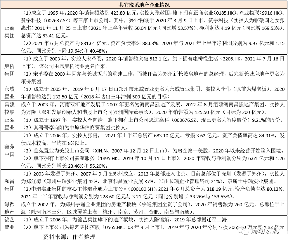 2、除綠都地產(chǎn)((鄭州宇通企業(yè)全資子公司)外,豫系地產(chǎn)企業(yè)的實(shí)控人大多為民營(yíng)企業(yè)主(如建業(yè)的胡葆森、康橋的宋革委、永威的李偉、正弘的李向清、鑫苑的張勇等等),國(guó)營(yíng)背景的豫系地產(chǎn)企業(yè)在中原地區(qū)幾乎沒(méi)有一席之地,導(dǎo)致豫系地產(chǎn)企業(yè)陷入危機(jī)時(shí),與當(dāng)?shù)卣g的博弈會(huì)加劇。