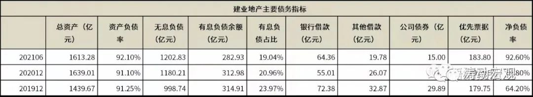 建業(yè)地產(chǎn)是建業(yè)集團(tuán)的核心主體,2021年6月底資產(chǎn)負(fù)債率高達(dá)92.10%,較2020年底還上升了1個(gè)百分點(diǎn),且2014年以來(lái)一直在80%以上、2019年以來(lái)更是持續(xù)居于90%以上,如此高的資產(chǎn)負(fù)債率表明建業(yè)地產(chǎn)本身一直將弦繃的太緊,很難承受較大且持續(xù)的外部環(huán)境沖擊,一旦項(xiàng)目受到影響出現(xiàn)進(jìn)程放緩甚至中斷,則建業(yè)地產(chǎn)的流動(dòng)性危機(jī)可能便會(huì)出現(xiàn)。