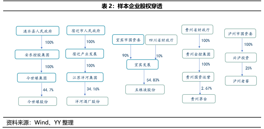 首先,需要關注產投平臺對白酒企業的控制力,這關系到平臺對優質白酒資產的騰挪能力。樣本企業中,安東控股、宿遷產業和宜賓發展都是白酒企業的母公司,興瀘投資是瀘州老窖的二股東,貴州國資運營是小比例股權獲得茅臺股權的無償劃轉。