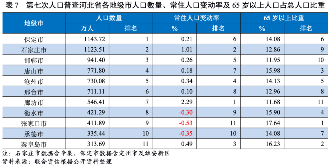 從常住人口變動率看,受益于京津冀協同發展,廊坊市人口增長率最高,十年年平均增長率(下同)為2.29%;石家莊市人口增長率次之,為1.01%;經濟財政實力相對較弱的衡水市、張家口市及承德市出現人口流失情況,人口流失率均在0.30%以上。