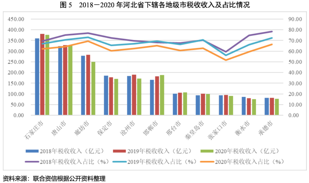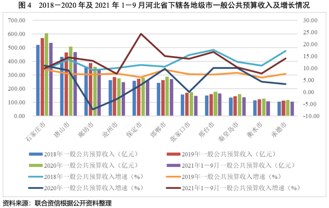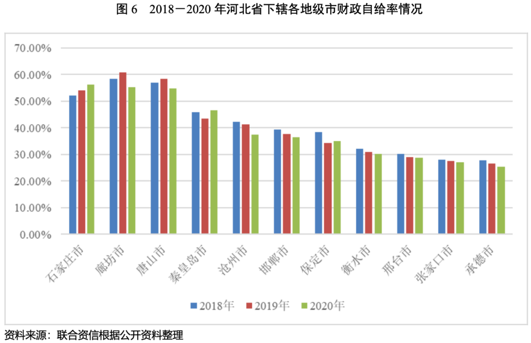 3.河北省各地市財政收入對發債城投企業債務的支持保障能力
