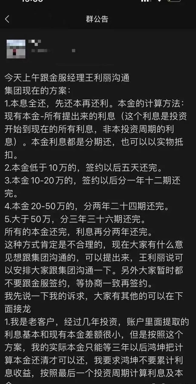 鴻坤金服清退方案預計星期四出正式的方案,會通知到每一個投資人,應該是在APP上會公布