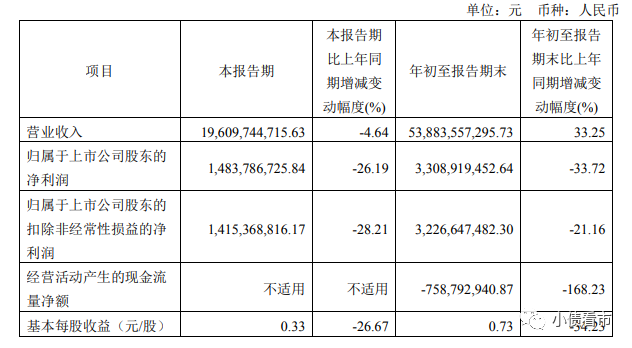 三季報主要財務數據