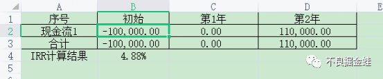 在公告中提到了復利計算方式和樣例,采用內部收益率法,英文名稱Internal Rate of Return,簡稱IRR。至于IRR的原理和解釋,也不在這分享了。那我們分享點什么呢?如何自己簡單計算IRR。