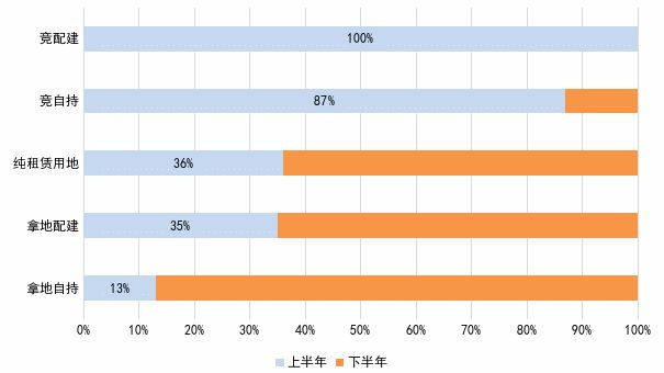 按照拿地時間,分上、下半年來看,不同類房企拿地的節奏差異巨大。