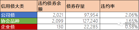 從違約率來看,則是遵循公司債>協(xié)會品種>企業(yè)債的這樣一個規(guī)律。
