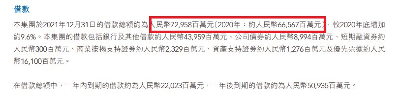 根據(jù)寶龍地產(chǎn)年報(bào)的披露,截至2021年末,借款總額約為729.58億元。