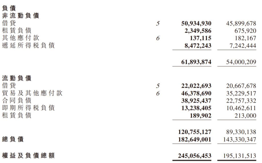 如果看總負(fù)債,更是高達(dá)1800億元,比2020年末增加了近400億元,其中約有162億元是合同負(fù)債增加的,其他主要增加項(xiàng)除了借貸外就是貿(mào)易及其他應(yīng)付款。