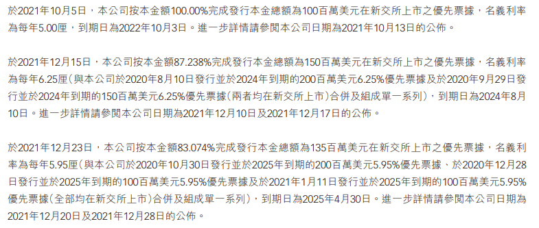 年報(bào)挨個(gè)披露了每一筆債務(wù),包括美元債務(wù)。