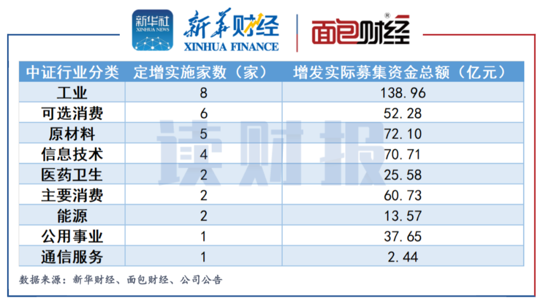 協(xié)鑫能科和華峰化學(xué)的定增金額分列第四、五位,分別發(fā)行約2.71億股和3.29億股,實(shí)際募集資金分別約為37.65億元和28億元。