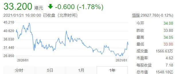 那也是最好表現(xiàn),接下來(lái)迄今,震蕩行情。最低時(shí)跌破30塊港幣,20多,近期其實(shí)不錯(cuò),回到30來(lái)塊港幣。