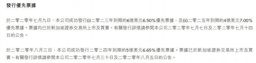 融創(chuàng)中國(guó)當(dāng)然也在想辦法,如上圖,2020年中報(bào)披露,發(fā)行了好幾筆單筆數(shù)億美元的優(yōu)先票據(jù),利率6、7個(gè)點(diǎn)不等。利率高不高,杠桿地產(chǎn)不判斷,桿友覺得呢?