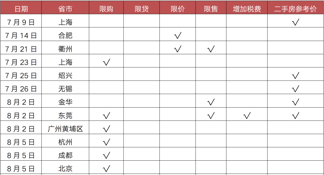 具體城市來看,惠州、衢州、銀川落地限購(gòu),上海、杭州等升級(jí)限購(gòu)。比如房?jī)r(jià)漲幅較為明顯的銀川,寧夏戶籍家庭在銀川市轄區(qū)限購(gòu)2套住房,非寧夏戶籍家庭在銀川市轄區(qū)限購(gòu)1套住房。杭州、東莞等收緊社保購(gòu)房條件,落戶杭州未滿5年的,需在購(gòu)房前2年內(nèi)連續(xù)繳納24個(gè)月社保方可購(gòu)買1套住房,非杭州戶籍需在購(gòu)房前4年內(nèi)繳滿48個(gè)月社保方可購(gòu)房。