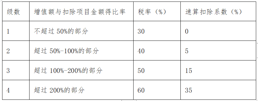 土地增值稅采用四級(jí)超率累進(jìn)稅率
