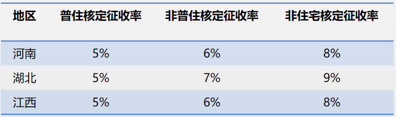 核定征收率原則上不得低于5%,各省級(jí)稅務(wù)機(jī)關(guān)結(jié)合本地實(shí)際,區(qū)分不同房地產(chǎn)類型制定核定征收率。
